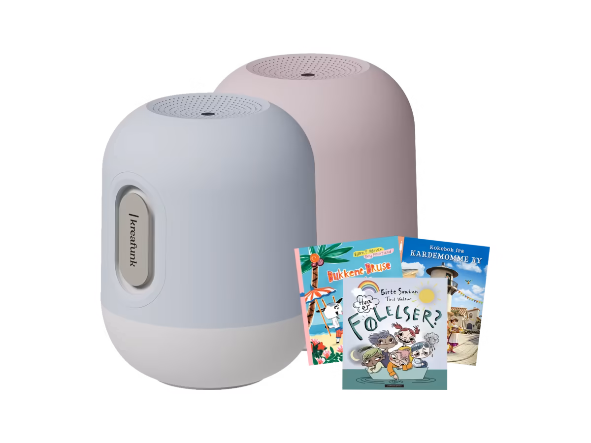 Barnas Egen Bokverden gir en stilig Kreafunk Glowie høyttaler med nattbelysning og 3 barnebøker i velkomstgave til nye medlemmer – totalverdi opptil 1996 kr.