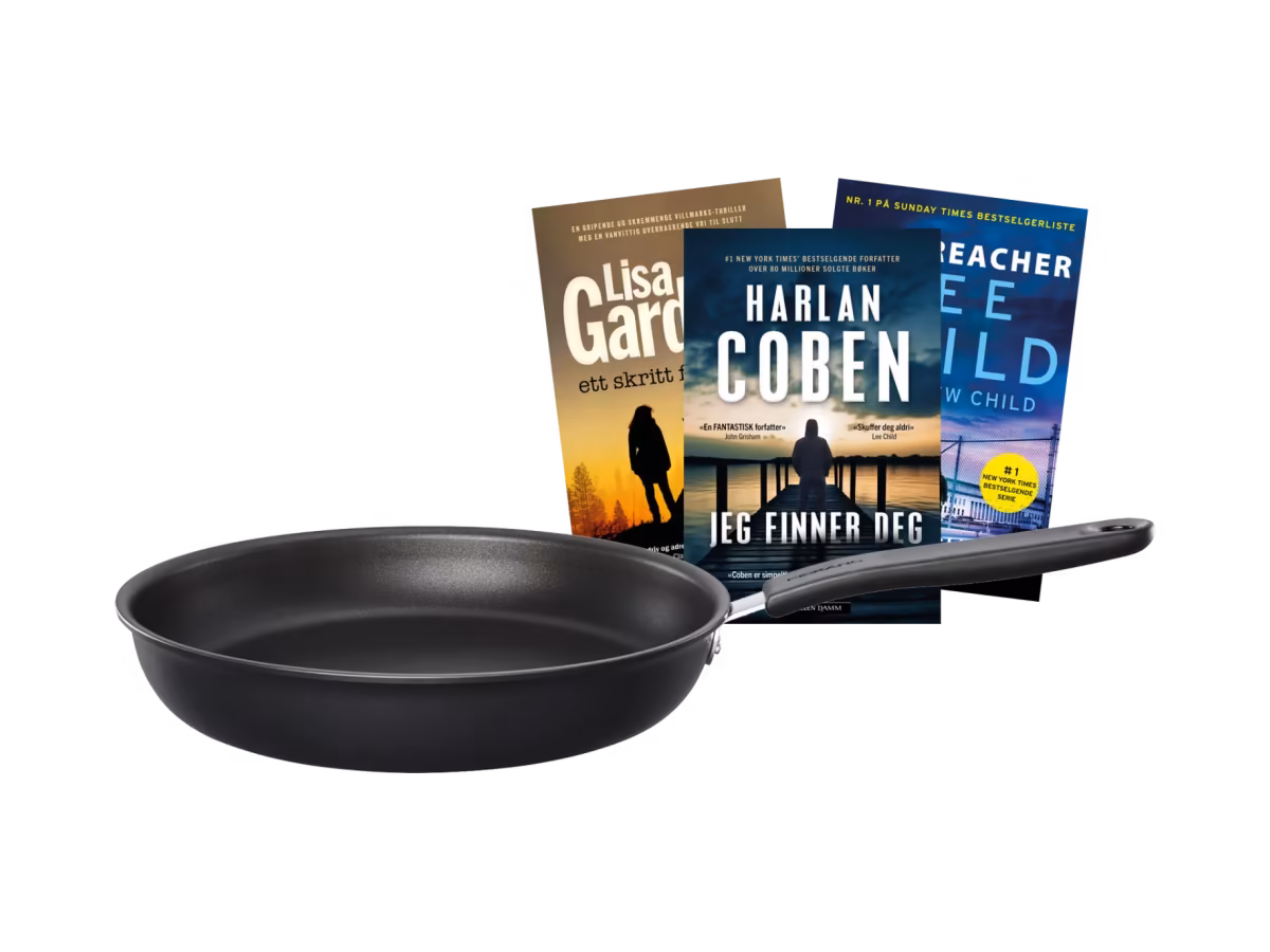 Krimklubben gir en Fiskars Functional Form stekepanne og 3 krimbøker i velkomstgave til nye medlemmer – totalverdi opptil 1876 kr.