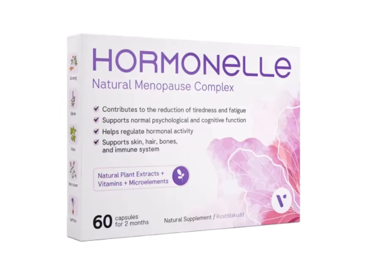 Hormonelle er et kosttilskudd tilpasset kvinner i overgangsalderen med planteekstrakter som rødkløver, salvie og humle, samt viktige vitaminer og mineraler.