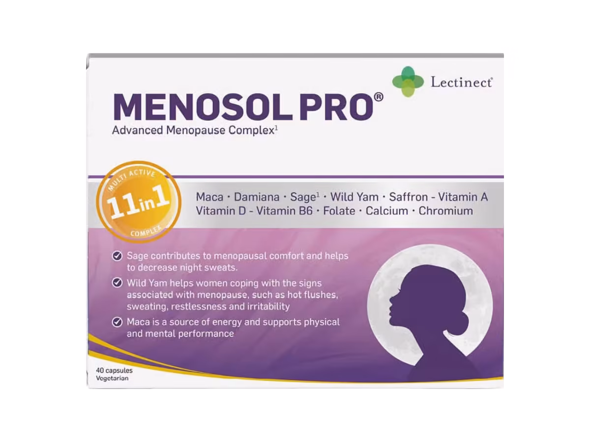 Menosol Pro er et kosttilskudd med planteekstrakter, vitaminer og mineraler, utviklet med tanke på kvinner i overgangsalderen.