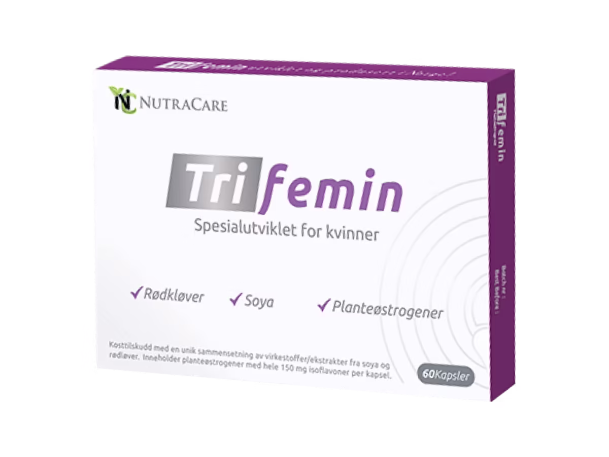 Prøv Trifemin i 60 dager – et 100% naturlig kosttilskudd som kombinerer rødkløver og soya, utviklet for voksne kvinner.